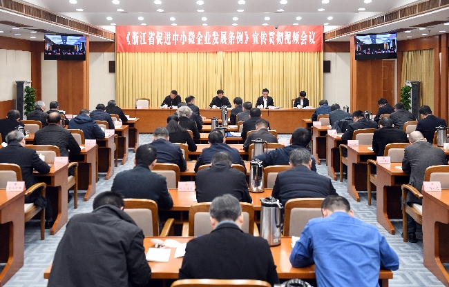 为推动《浙江省促进中小微企业发展条例》全面贯彻实施,以法规制度的落实提振中小微企业发展信心,2月27日,省人大常委会组织召开视频会议,部署条例宣传和贯彻实施工作。省人大常委会党组书记、副主任陈金彪出席会议并讲话,省政府副省长卢山对全省各级政府及其有关部门做好条例贯彻执行工作提出要求。省人大常委会党组副书记、副主任高兴夫主持会议。